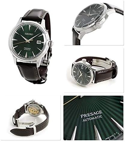 Seiko Presage Watch Cocktail Time SRPD37J1. Deep, rich tones, such as the fascinating purple of a Black Cat Martini and the mysterious green of a Mockingbird sparkling and to under soft light, are the key to this sophisticated collection of taste.