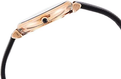 The sleek black leather strap of this Emporio Armani ladies' watch keeps the focus on the glossy black mother-of-pearl dial and polished rose gold-tone case. The dial is accented with rose gold-tone Roman numeral and stick indexes and the iconic eagle logo at the 12 o'clock hour. Case Thickness: 7 mm; Case Size: 32 mm Band Width: 14 mm; Inner Circumference: 175 +/-5 mm Band Material: Leather Water Resistance: 3 ATM.