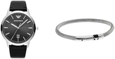 Specifications of EMPORIO ARMANI Men's Black Leather Watch and Silver-Tone Stainless Steel Bracelet, Set
