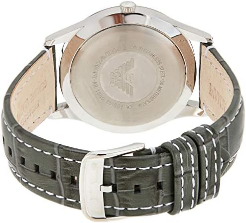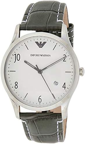 EMPORIO ARMANI BETA watch AR1880, 41 mm stainless steel case with mineral dial window, grey dial with analog display, calendar with date, crocodile pattern leather strap with steel buckle closure.