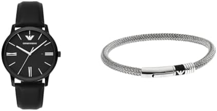 Specifications of Emporio Armani Men's Black Leather Watch and Silver-Tone Stainless Steel Bracelet, Set