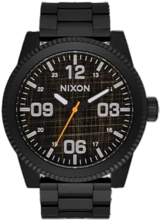 The Nixon CORPORAL men's watch in black impresses with a distinctive stainless steel case with 48 mm diameter and a robust strap for long-lasting wearing comfort in everyday life With 10 bar water resistance, the watch reliably protects against water in rain or short dives, ideal for active men The black design gives the watch an elegant, timeless look that can be combined in many ways with casual and business looks The large dial ensures optimal readability and underlines the masculine, clear lines of the Nixon CORPORAL Quality, functionality and style combine in this model that impresses demanding men with distinctive taste