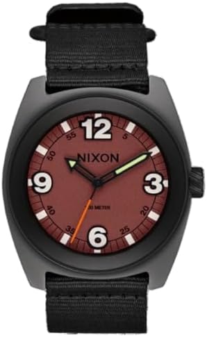 The Nixon Clutch men's watch in black combines a robust nylon strap with a 42 mm case, perfect for sporty men who value style and function With 10 bar water resistance, it reliably protects against water, ideal for outdoor activities or everyday use The simple black design provides a timeless look that goes with different outfits in many ways The clear dial guarantees easy readability, while the nylon strap ensures a comfortable fit The Nixon Clutch Black is a functional and fashionable companion for the active lifestyle of modern men