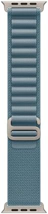 The rugged Alpine Loop is made from two textile layers woven together into one continuous piece without stitching. -- High-strength yarns reinforce the top loops, and the corrosion-resistant titanium G-hook slides easily into the loops for secure fit. -- This strap is carbon neutral. -- The Alpine Loop contains 43% recycled content by weight, 100% of manufacturing electricity is covered by clean energy, and 50% or more of all carbon-neutral Apple Watch products are shipped without aeroplanes.
