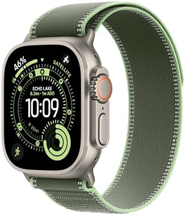 The ultra-thin, lightweight Trail Loop is made from a nylon weave creating a soft strap with increased elasticity for a comfortable fit. -- The strap is infinitely adjustable with a convenient pull tab for quick adjustments on the go. -- This strap is carbon neutral. -- The Trail Loop contains 32% recycled content by weight, 100% of manufacturing electricity is covered by clean energy, and 50% or more of all carbon-neutral Apple Watch products are shipped without aeroplanes.